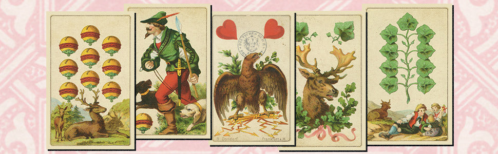 Harkening back to an era when divination was conducted with playing cards, the Folk Cards of Destiny is sure to occupy a unique and privileged position in any collection. Reflecting the whimsical, everyday scenes and motifs found on some of these early divination cards, this deck provides a fascinating reading experience. Based on an eighteenth-century deck by renowned printer Dondorf, the artwork brings a deep sense of imagination and nostalgia for a style of divinatory reflection that may just open a new chapter in your own contemporary spiritual quest.