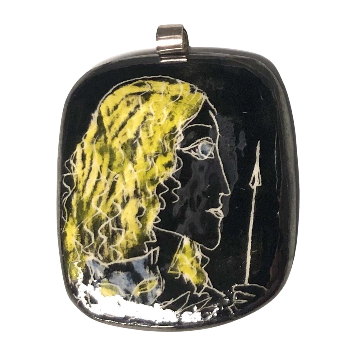 One of a kind, hand-painted, ceramic pendants made by Croatian artist Rok Zelenko depicting Freyja/Frigg, the Norse goddess of Love, Beauty, War, and Fertility.