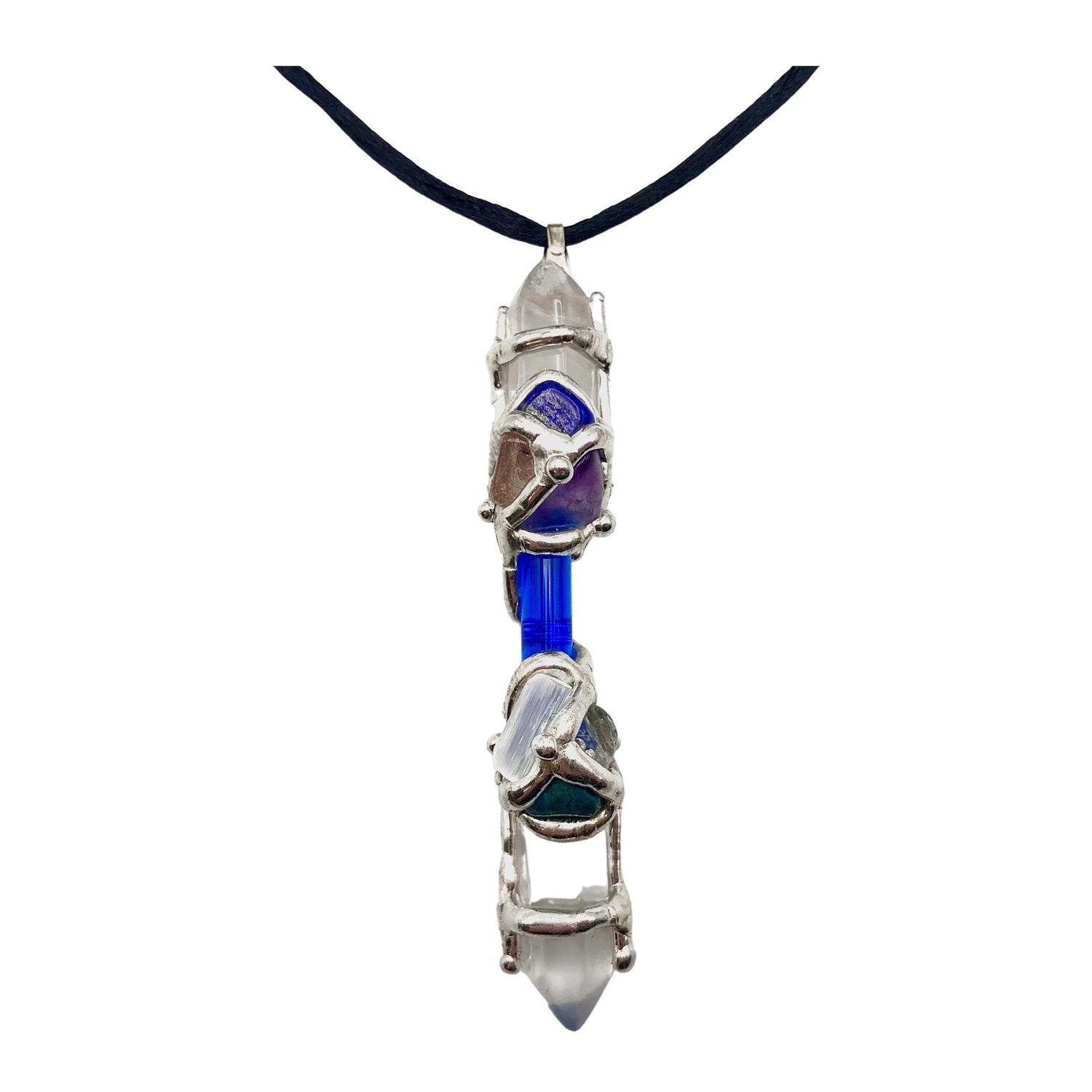 This pendant is called Channeling Beam of Light. Channeling through meditation and the combination of the stones in this pendant can facilitate the opening of divine light energy to enable for channeling.