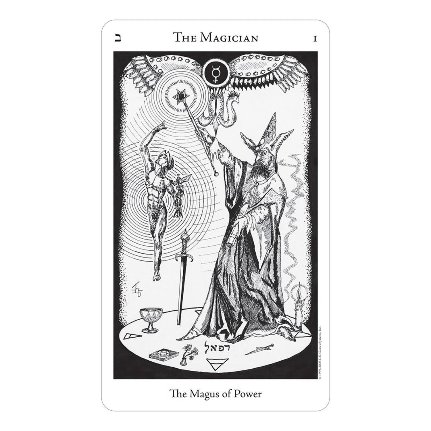 Godfrey Dowson’s subtle black and white designs emphasize the Golden Dawn’s astrological attributes with further sephirotic, angelic, geomantic, numerical, and kabbalistic elements. All 78 cards feature an exquisite level of detail that highlights the powerful symbolism.