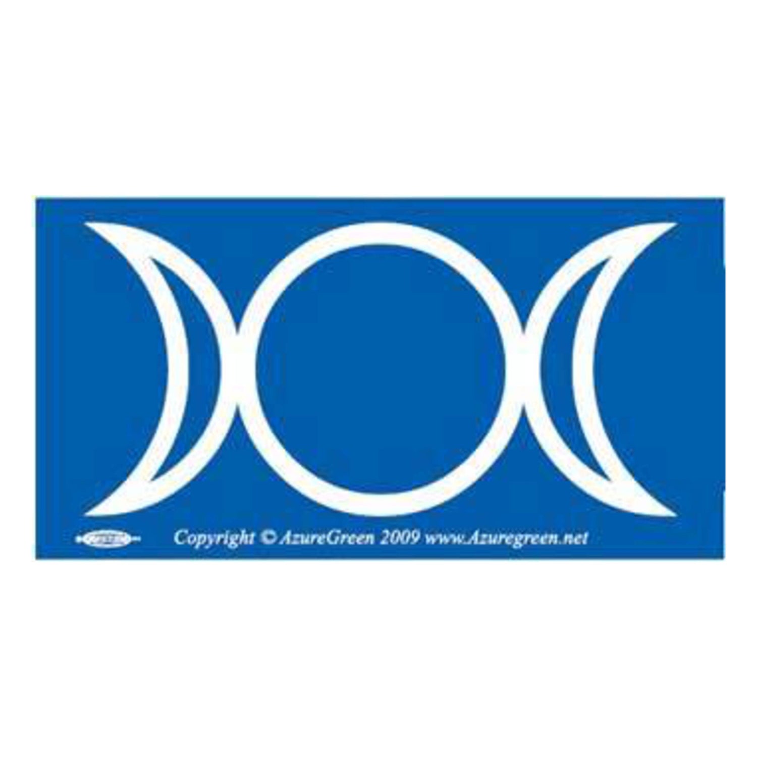This delightful bumper sticker presents the image of a triple moon, waxing to full to waning, in white upon a violet background. Measures 5 3/4" x 3".