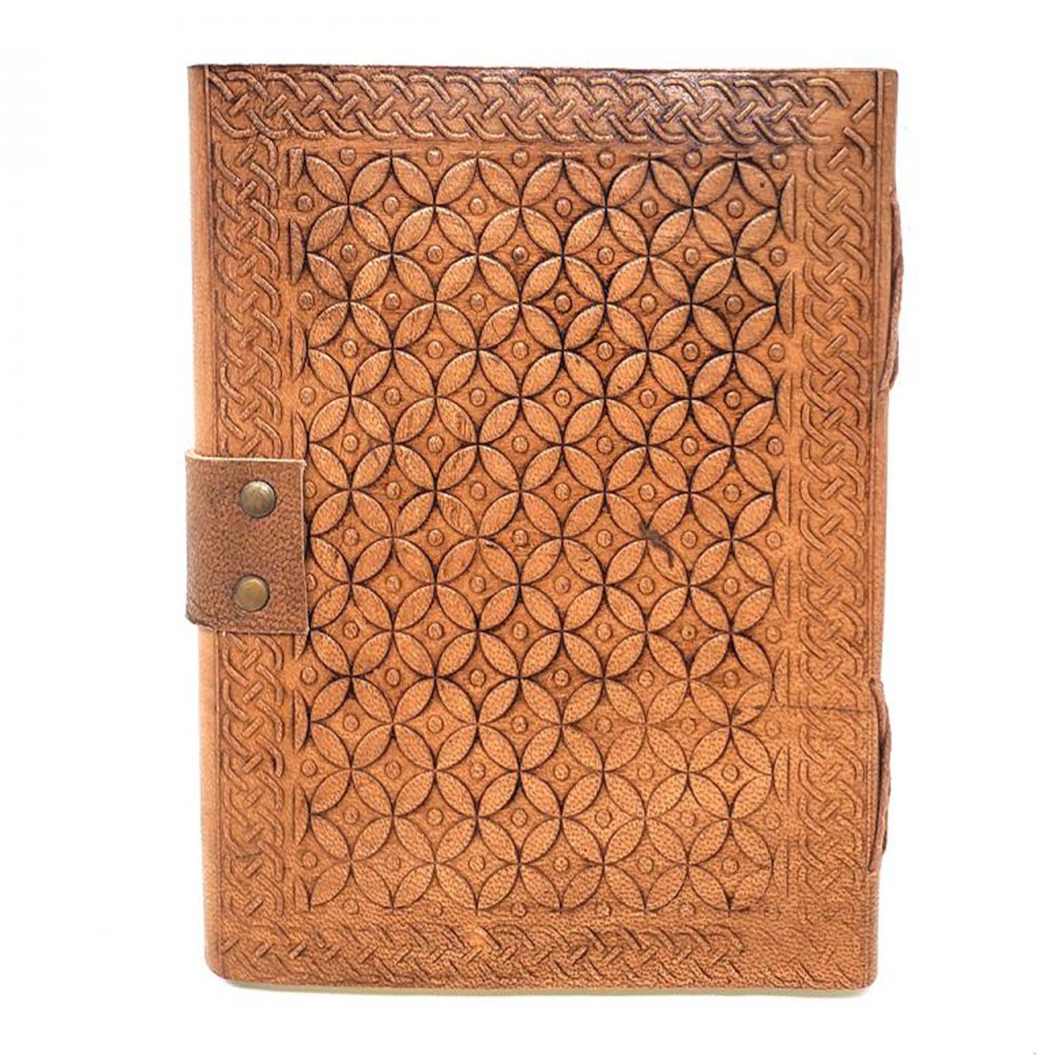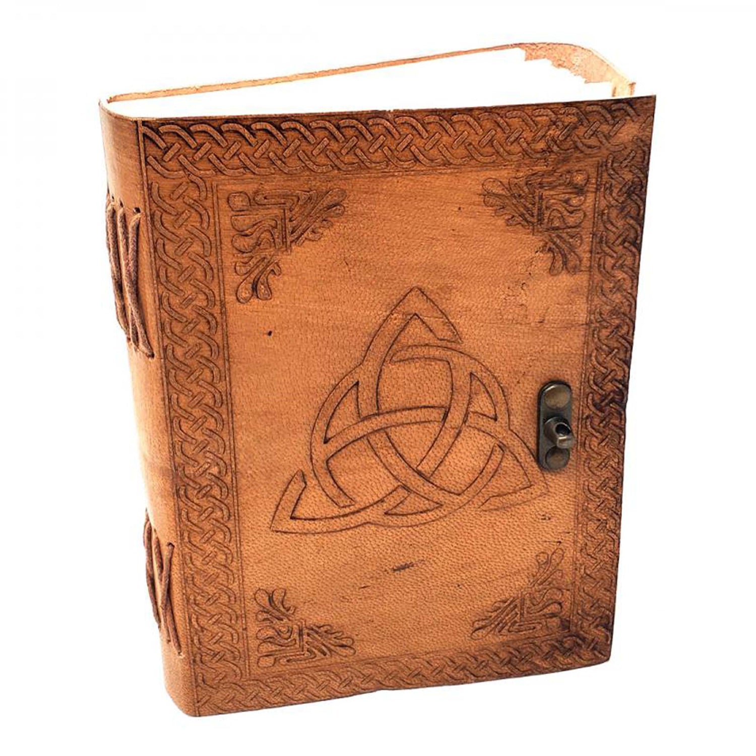 Triquetra embossed leather journal 5x7" Leather with an aged look. containing around 192 hand made paper closes with latch.
